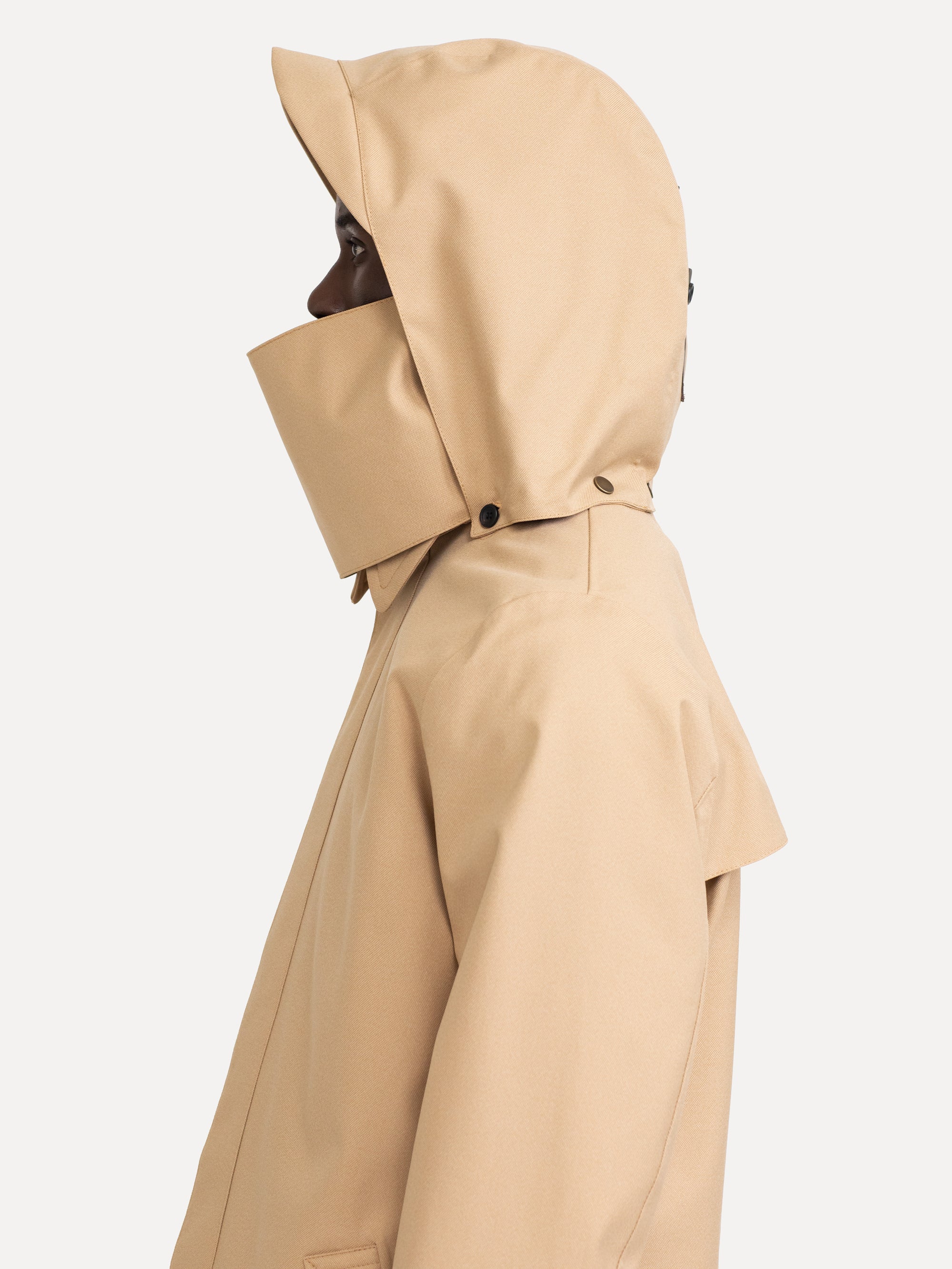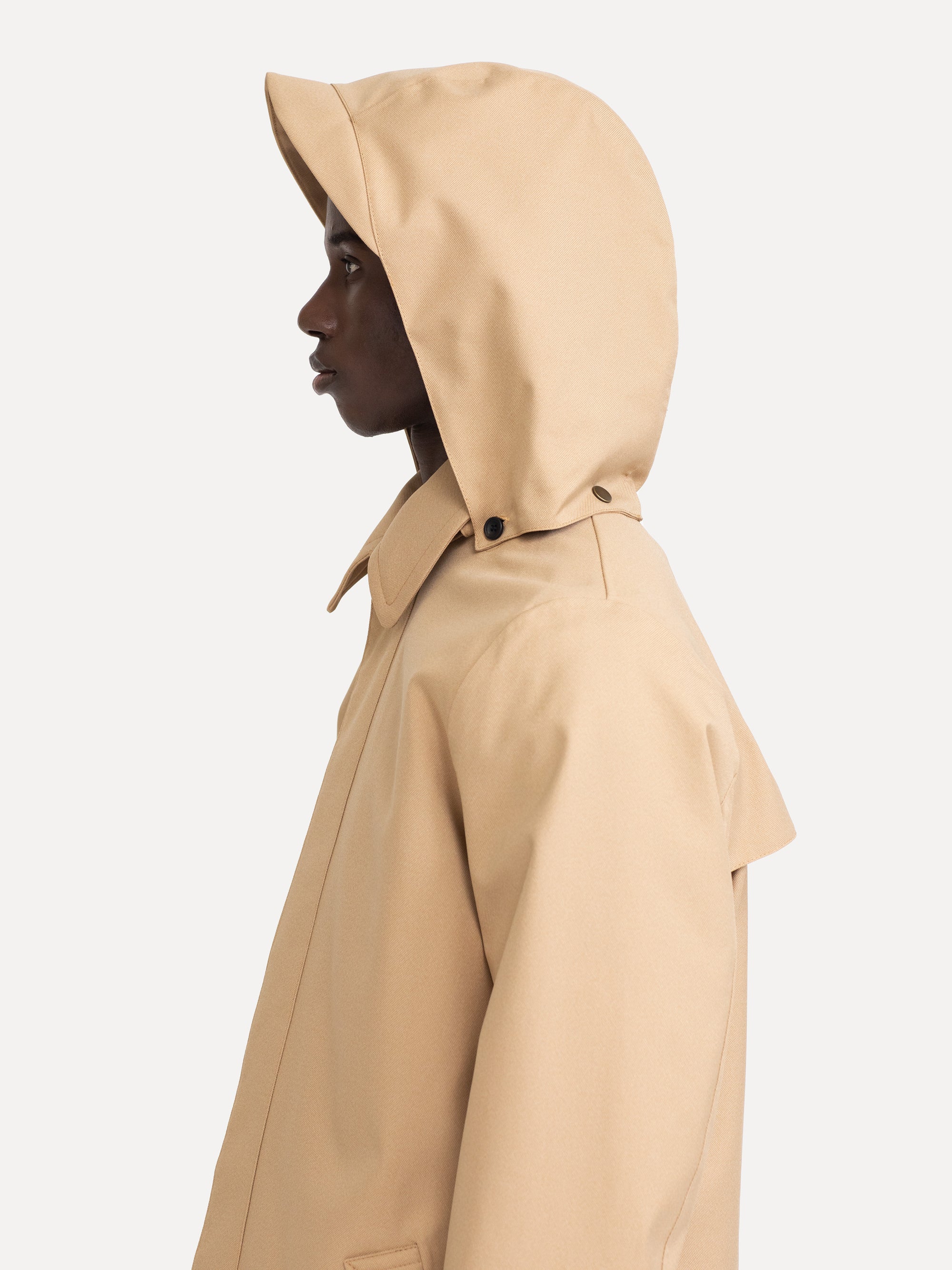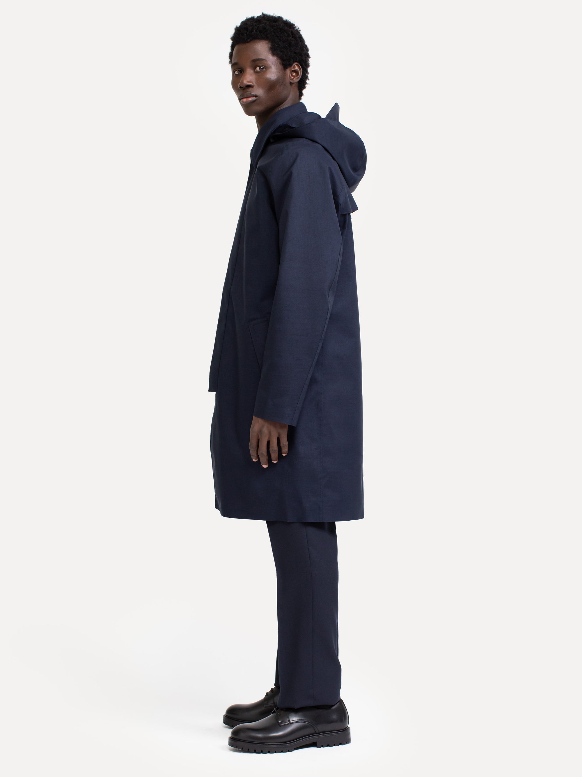 A quest for a reasonably priced long garment led to this stylistic coat. It’s stripped of all ornaments and its simple form exudes a lean elegant silhouette. Clean cut, fully waterproof and versatile.