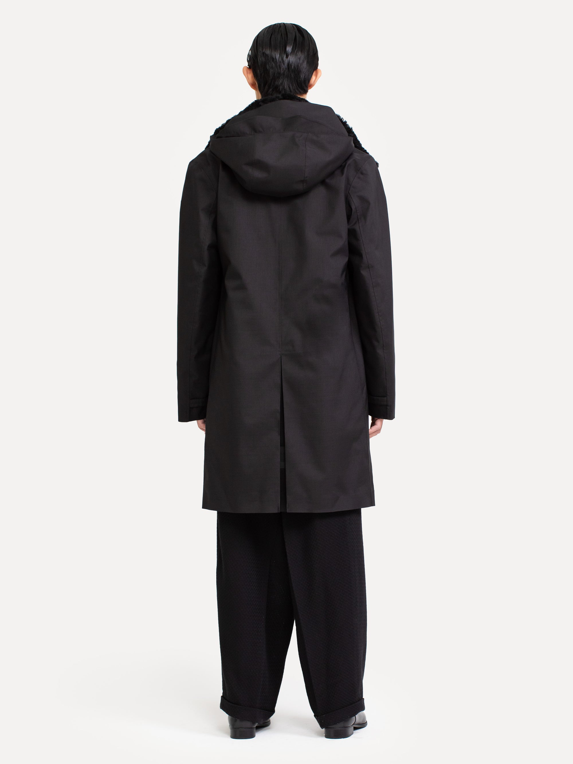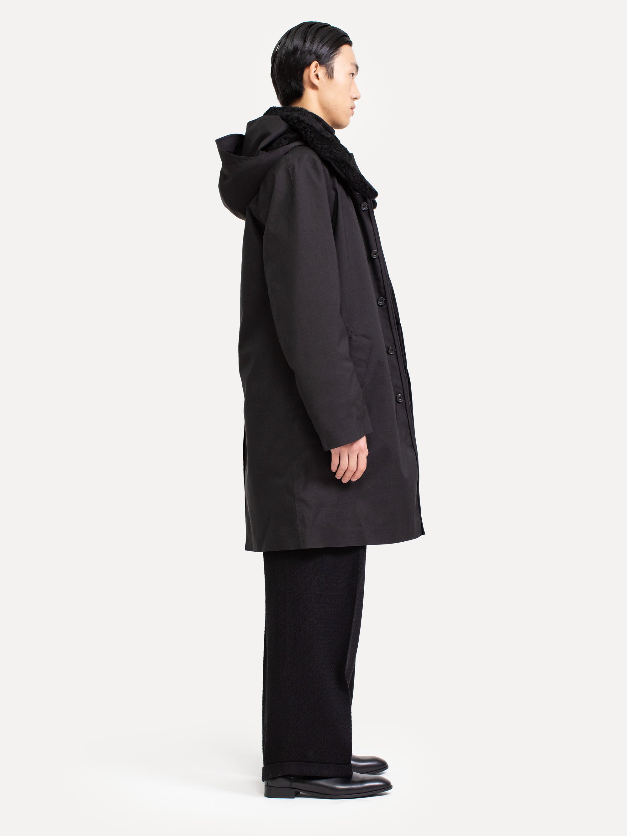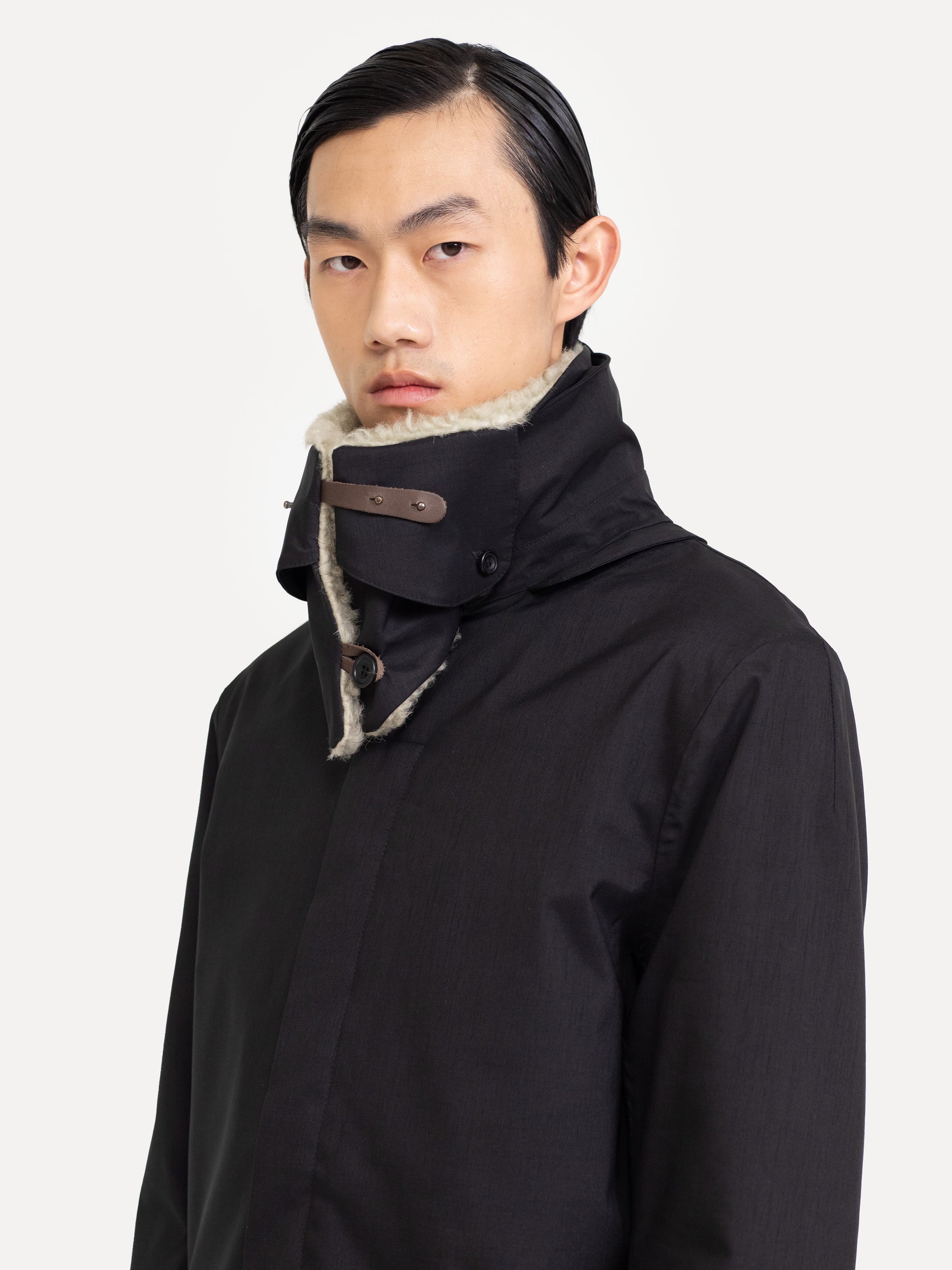 The style Arctic Homme is a technical winter coat featuring a wool padding. All thanks to a new, game changing padding innovation from Switzerland that replaces polyester wadding with wool fibers, the Arctic Collection takes on the challenge of battling the down jackets on the market. The Arctic Homme is a winter coat for the most biting cold, up to -30 degrees Celsius. Light weight, tailored, warm, functional and refined. A new classic with stealth.